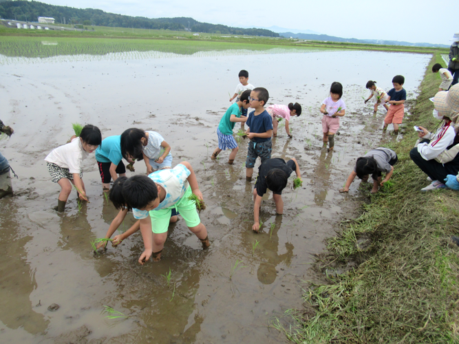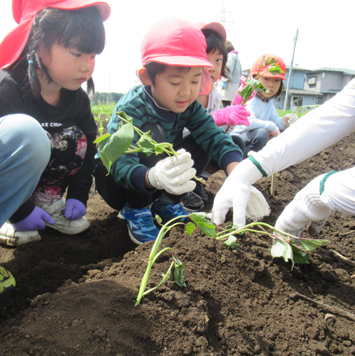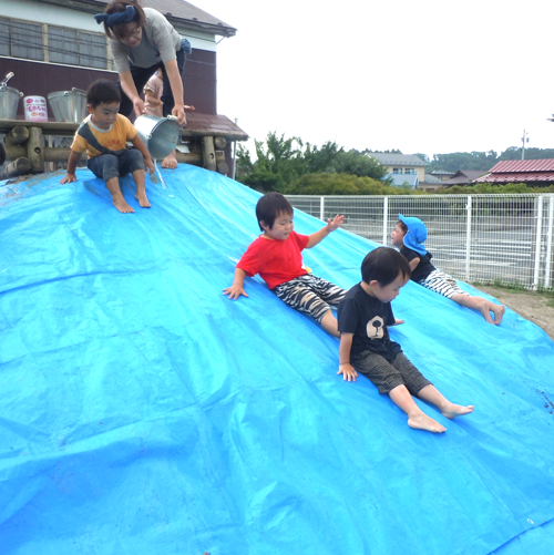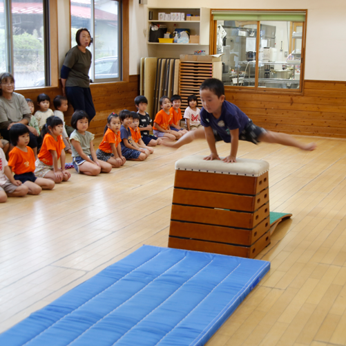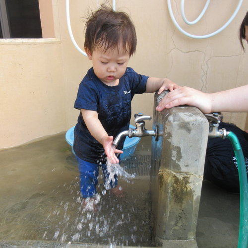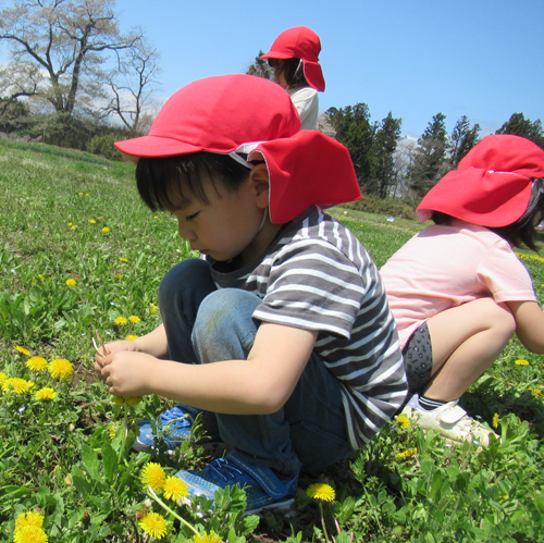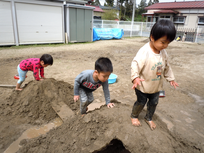 太陽・土・水などの自然に親しみ、五感を育てます。 土や水、おひさまの刺激は自らの感覚をはぐくみ、全身を使った遊びを通じて、子どもたちのたくましい身体と脳を育てます。